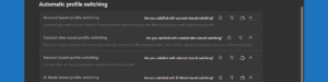 This week is all about Microsoft Edge for Business and the automatic switching feature. Microsoft Edge for Business is the dedicated Microsoft Edge experience that is created for work accounts. It provides IT administrators with the capabilities to provide users with a productive and secure browsing experience across managed and unmanaged devices. That includes the ability to manage the automatic switching behavior between work and personal profiles. Automatically switching between profiles can help users to keep their work and personal browsing separate. When the device has an existing work profile, it enables automatic switching when adding a personal profile, to enforce the browsing context separation. That behavior can also be managed. The automatic switching is not always desirable, or sometimes needs some tuning. This post will … Continue reading Managing automatic switching in Microsoft Edge for Business