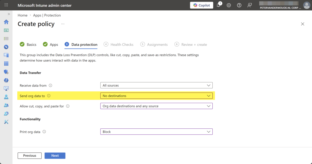 Note: This configuration can be applied in any applicable app protection policy. It is all about the sending org data.