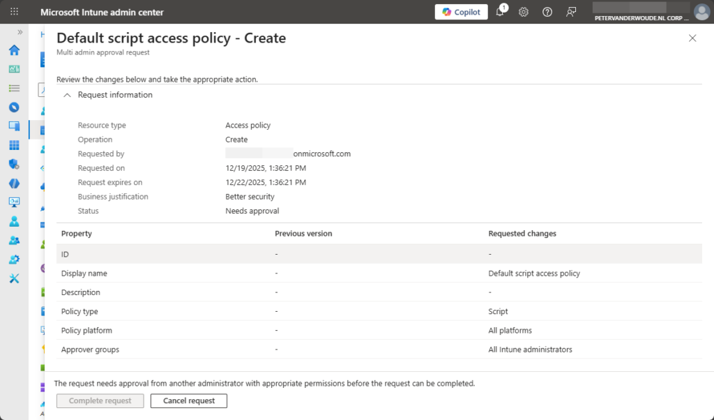 - Multi Admin Approval requests: These are the tasks that are normally found in the Microsoft Intune admin center at Tenant administration > Multi Admin Approval > All requests.